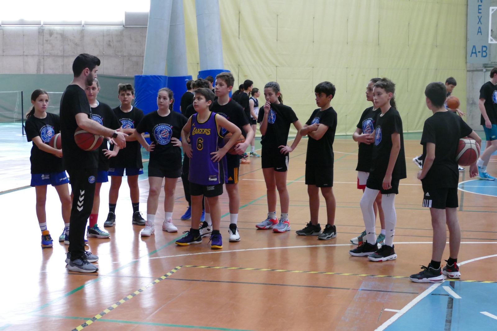 Trabajaron desde técnica individual a colectiva y realizaron tareas físicas. Uno de los días contaron con la visita del preparador físico del HLA Alicante de LEB Oro, Fabio Tarruella, que les explicó la importancia de un buen trabajo físico en la prevención de lesiones. Asimismo, el jueves visitaron el entrenamiento del HLA Alicante en el que pudieron hacerse fotos y recibir firmas de los jugadores del primer equipo masculino lucentino.